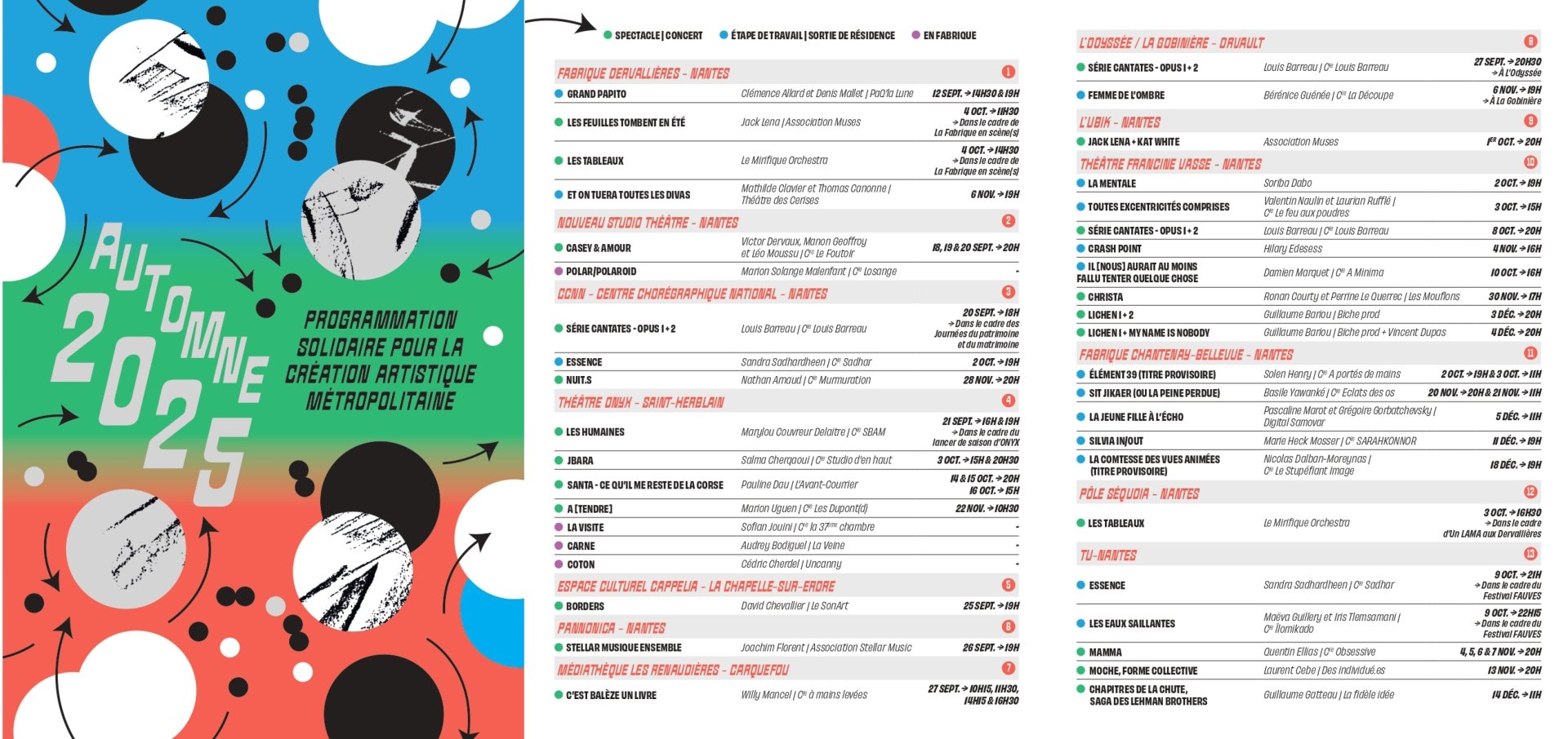 De nombreux lieux se sont engagés dans ce projet : Lieu Unique, Mixt, TU-Nantes, Théâtre Francine Vasse – Les Laboratoires Vivants, CCNN, La Soufflerie, ONYX, Pannonica, Stereolux, La Bouche d’Air, Piano’cktail, Théâtre La Fleuriaye, Le Nouveau Pavillon, L’Odyssée – La Gobinière, Théâtre Ligéria, Capellia et Cour et Jardin.